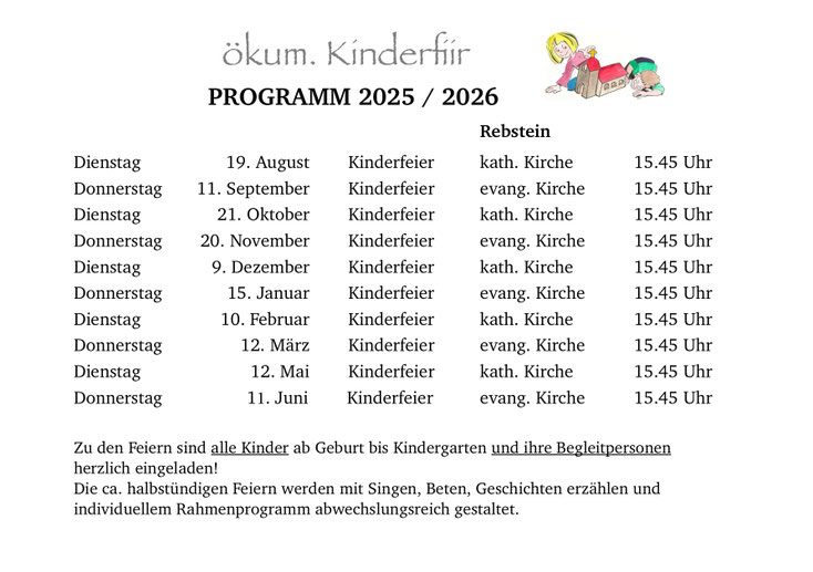 Vielfältige Angebote für Kinder und Familien werden für alle Pfarreien der Seelsorgeeinheit organisiert. Auf der Webseite unserer Seelsorgeeinheit Altstätten finden Sie stets Hinweise auf die aktuellen Anlässe.